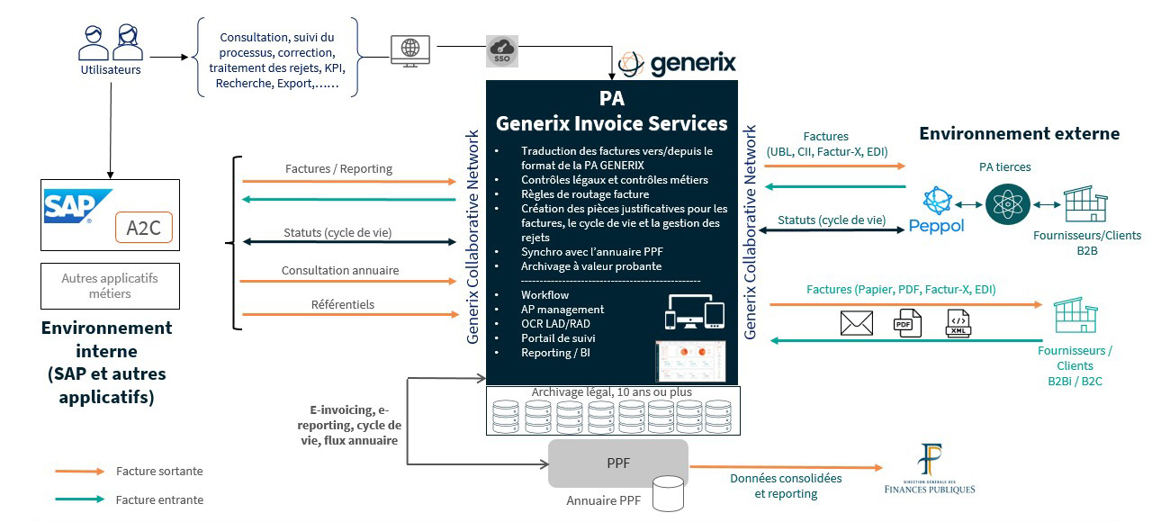 A2C se positionne en tant que concentrateur dans SAP des échanges avec les différents acteurs de la facturation électronique et propose une solution standard d’interfaçage de la PA Generix avec les solutions SAP ECC6 et SAP S/4HANA (On Premise et RISE).