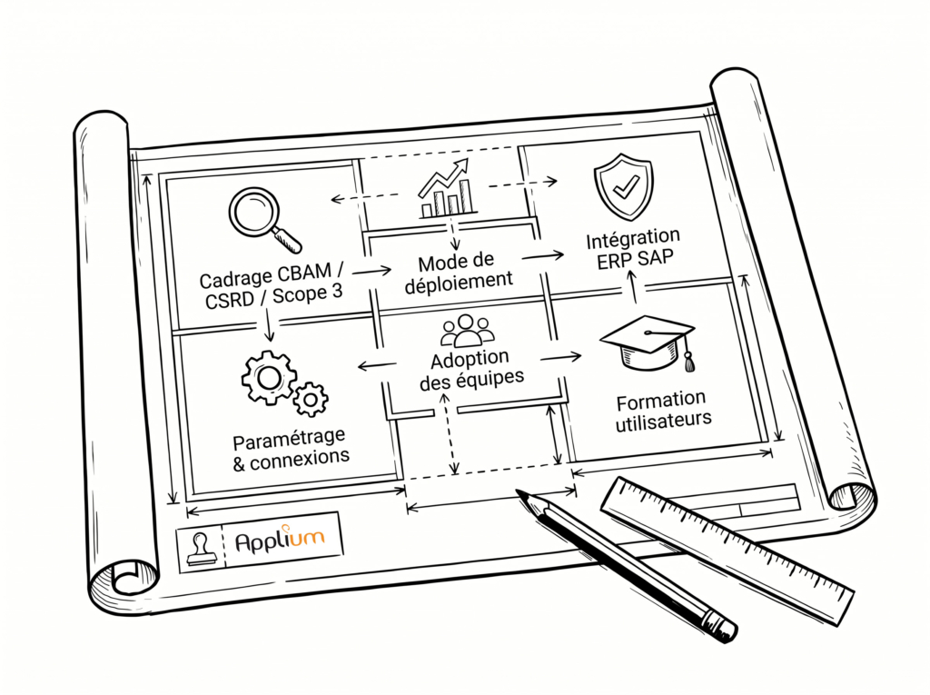 - identification du mode de déploiement adapté (standalone, intégré S/4HANA, ou connecté à SAP Sustainability Footprint Management)
